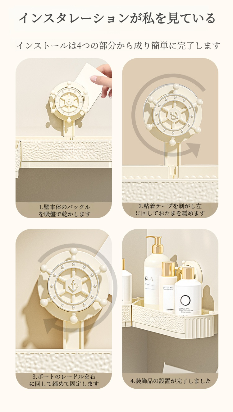 軽量回転式壁掛けシェルフ キッチンコーナーシェルフ 浴室ノーパンチ回転式耐圧棚