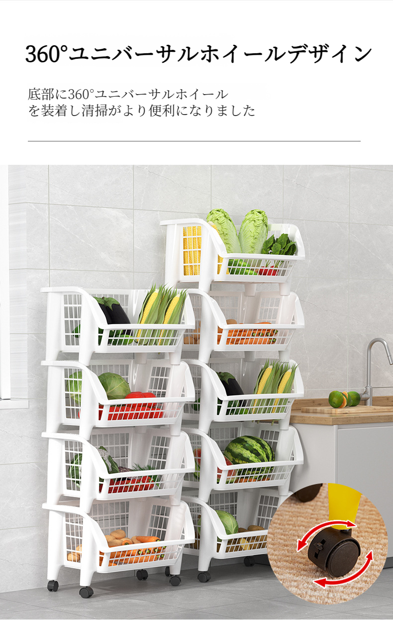 クラック・オーガナイザー 多機能トロリー 多段キッチンオーガナイザー フロアクリップシェルフ ハニカム果物・野菜オーガナイザー