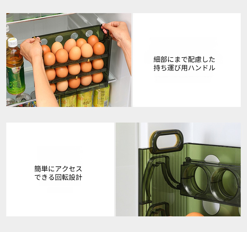 クリエイティブなフリップ式卵収納ボックス、卵トレイ、卵保存ボックス、冷蔵庫用サイドドア、卵収納ボックス、冷蔵庫用収納ラック